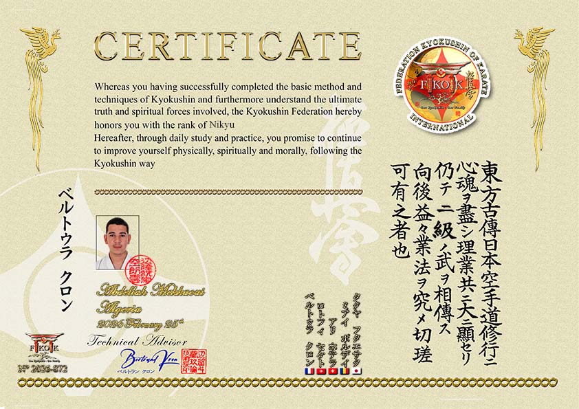 FKOK Algérie - Examens de hauts grades (2e Kyu à 3e Dan) sous la direction de Abdellatif Betaouaf Shihan (Branch-Chief Tlemcen).