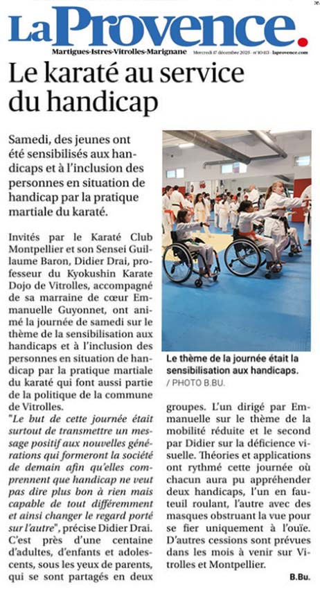 Didier Drai Sensei officiellement labellisé "Sport & Handicap". Et le Para-Kyokushin aux honneurs à Vitrolles.