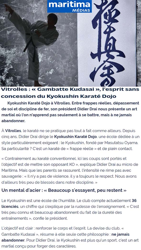 FKOK Monde - Championnat du Monde Kyokushin WIBK en France, avec une médaille d'argent pour Damien Drai (KKD Vitrolles, Branch-Chief Didier Drai Sensei), et les honneurs de la presse régionale.
