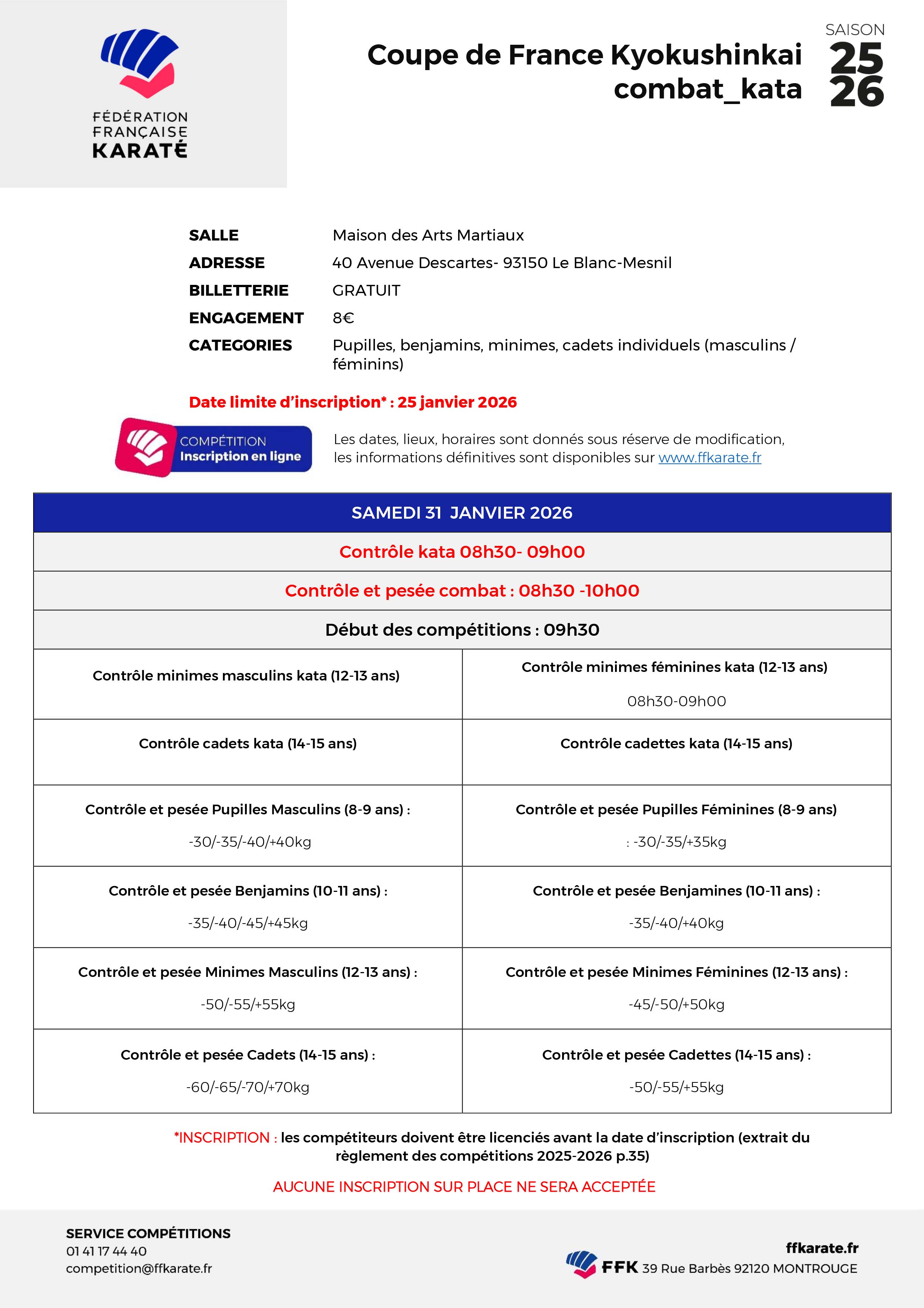 ANNULATION de la Coupe de France Kata par la Commission Nationale Kyokushin de la FFKDA.