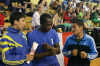 Polonais qui tente d'arrêter notre champion de France avant le podium.