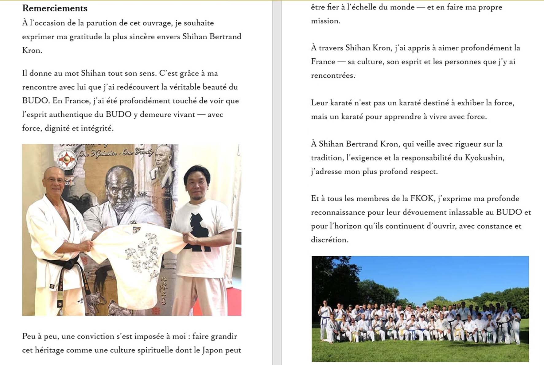 Un bel hommage que rend Takuya Futaesaku Shihan à Bertrand Kron Shihan et à FKOK dans son prochain livre !
