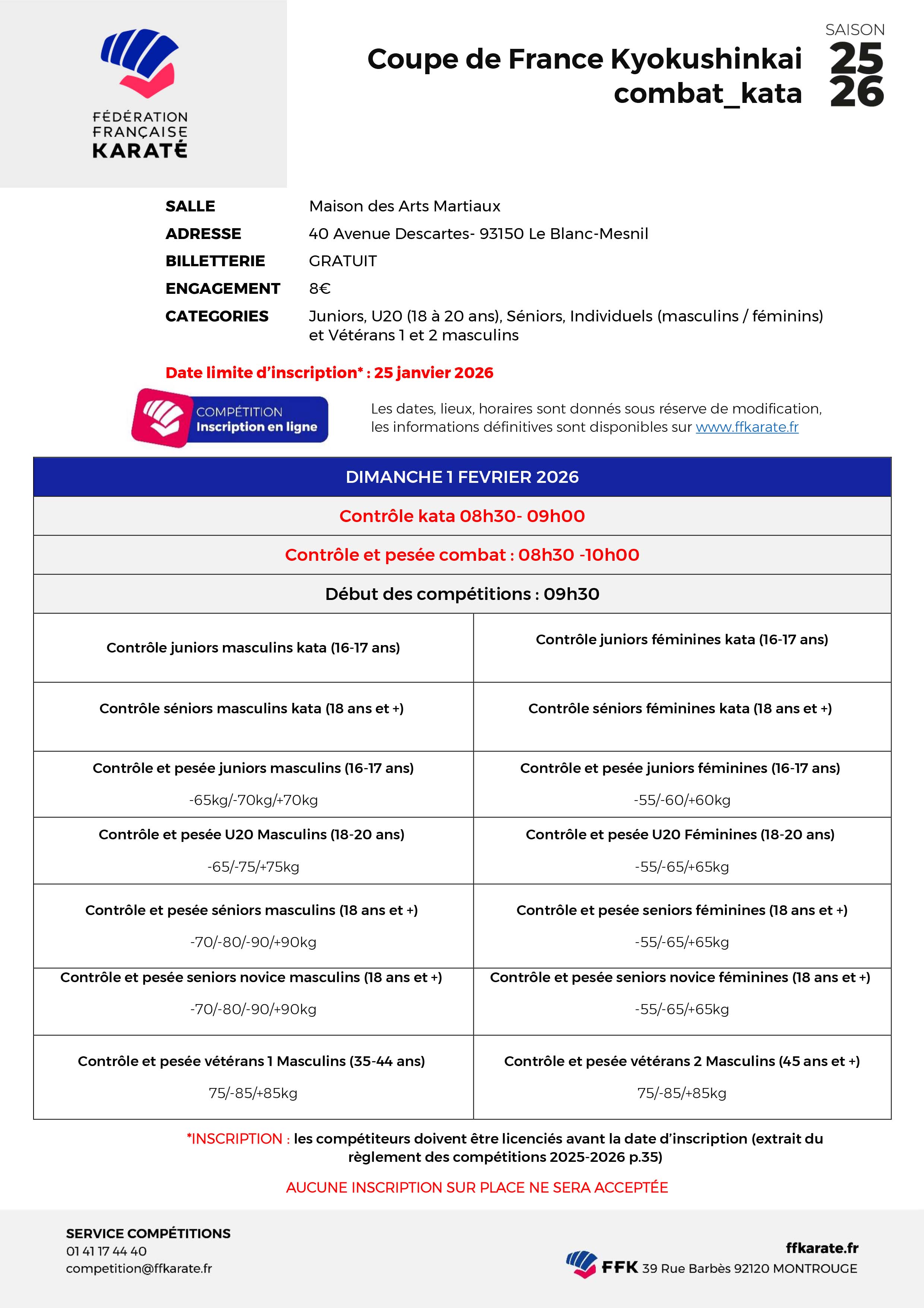 ANNULATION de la Coupe de France Kata par la Commission Nationale Kyokushin de la FFKDA.