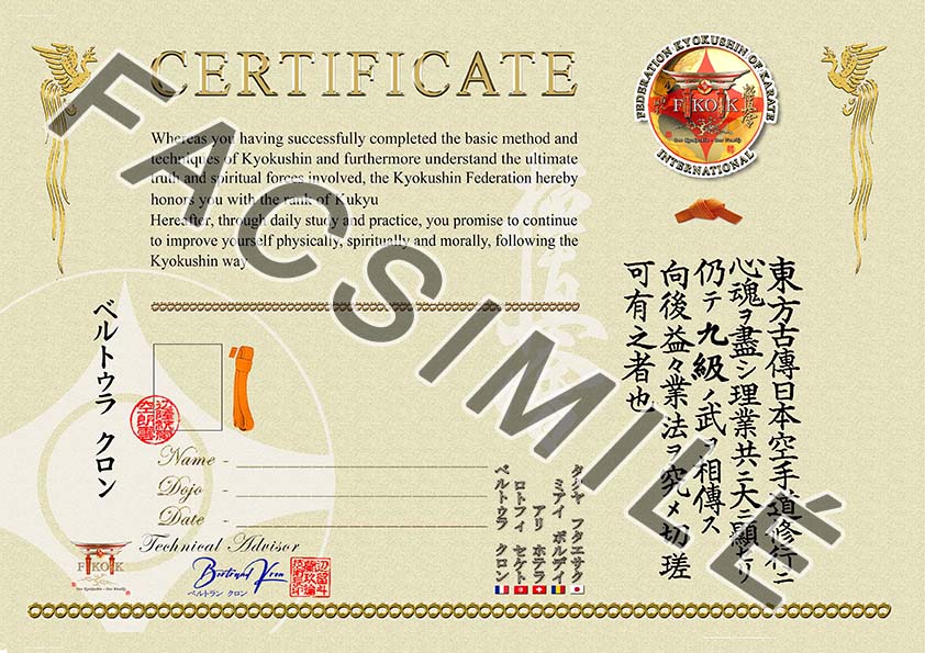 Diplômes de grades Kyokushin