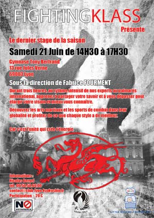 Samedi 1er - Fighting Klass à Lyon avec Fabrice Fourment et la participation des clubs FKOK de Tourrette-Levens, Lyon et Montpellier.