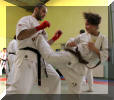 Sébastien Vanroyen de Pérenchies, Champion d'Europe en titre (seniors +35) défend les couleurs de FKOK avec Shaïnez el Haïmour du KFT Vernouillet (Katas et Kumité benjamines) au