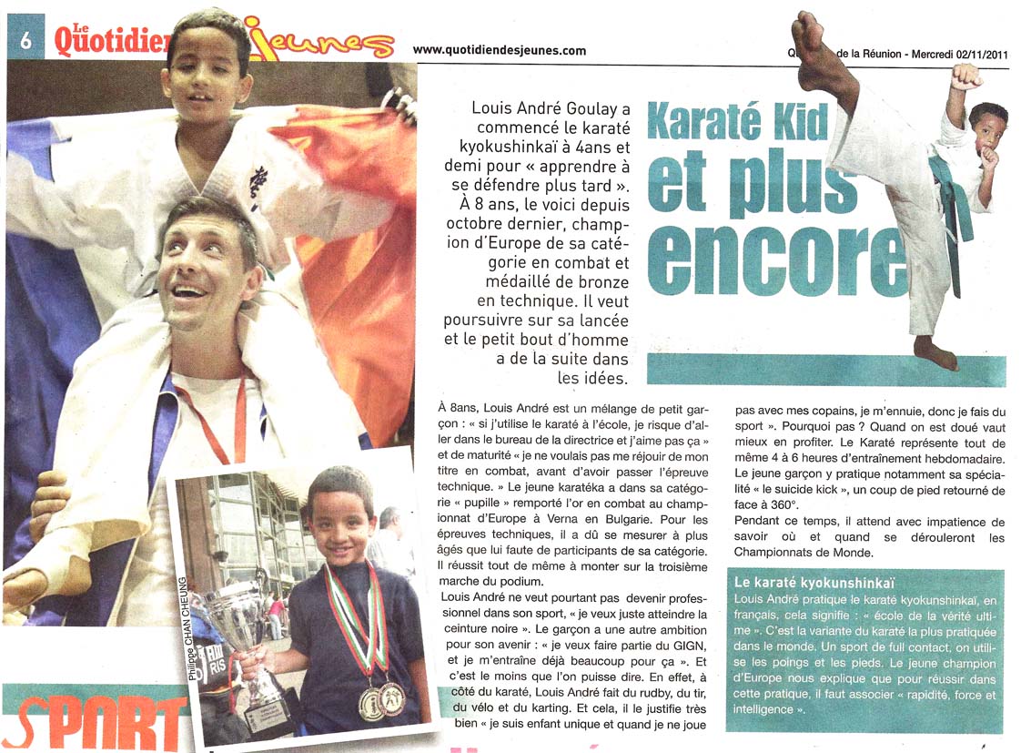Les honneurs d'Officiel Karaté Magazine FFK pour la Coupe d'Europe Kyokushin des 6~18 ans de Goderville 2011.