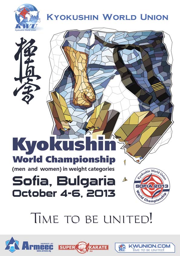 Championnat du Monde Kyokushin seniors KWF/KWU à Sofia avec près de 300 participants représentant 50 pays sur 7 catégories de poids masculines et 5 catégories de poids féminines.
