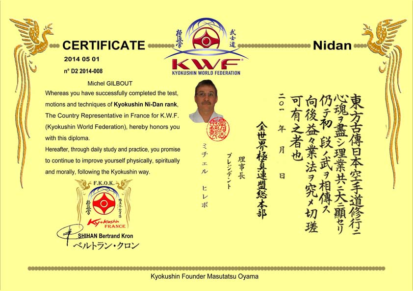 Homologation du grade de Nikyu Kyokushin pour Franck Lambert (Goderville).