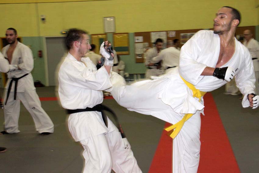 2e Kyokushin Training international sous la direction de Shihan Jérôme de Timmerman à Vernouillet. Plus de 70 combattants venus de France et de Belgique. Fondamentaux des techniques circulaires, entraînement spécifique du Team France au programme.
