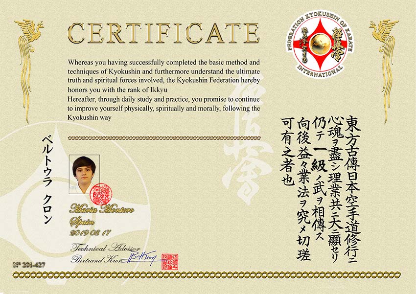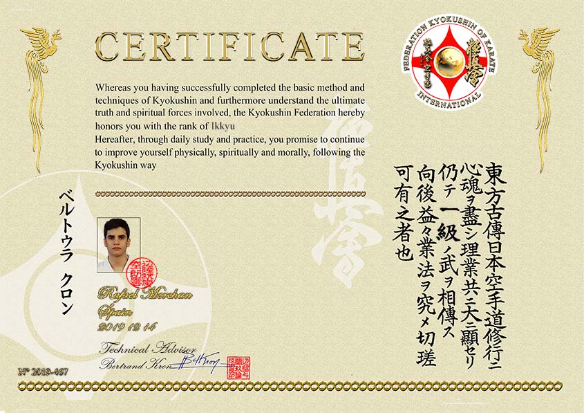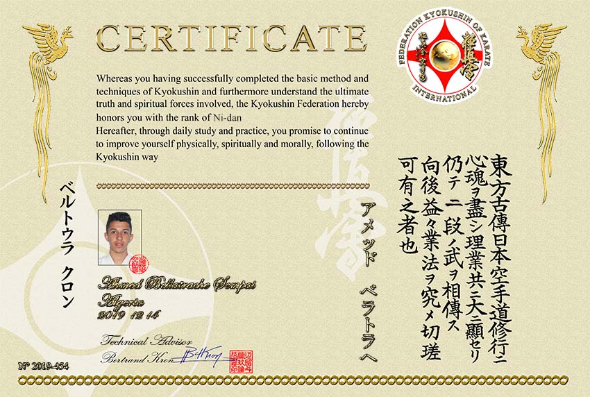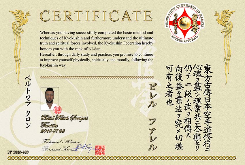 passé avec succès son Shodan Kyokushin à 68 ans, son 2e Dan FFK à 69 ns, vient