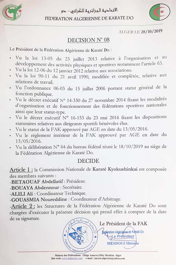 (FFKDA), reconnu par le